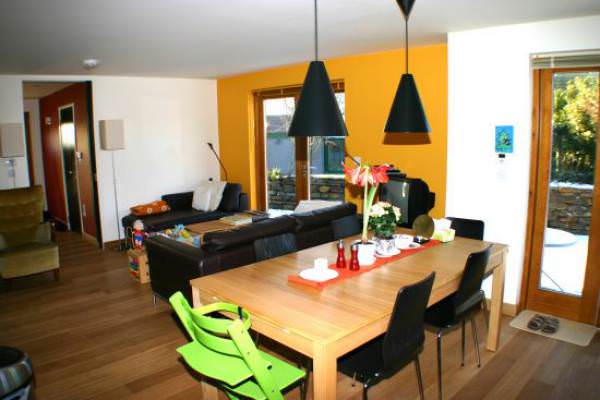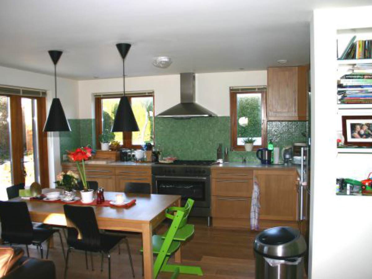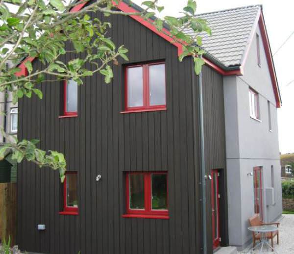 Irene comes from Germany, and bright, clean European styling is very evident throughout. In fact much of the design input came from her sister Ulrike who lives in Sweden. We built the house in timber frame, with an attractive mix of self coloured render and vertical timber weatherboarding finished with a traditional Swedish 'Falunpaint' system.